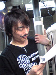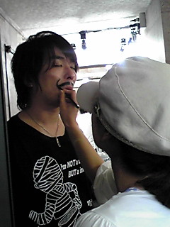 髭をメイクさんに書いて貰って、役柄のタケシでパチリ☆