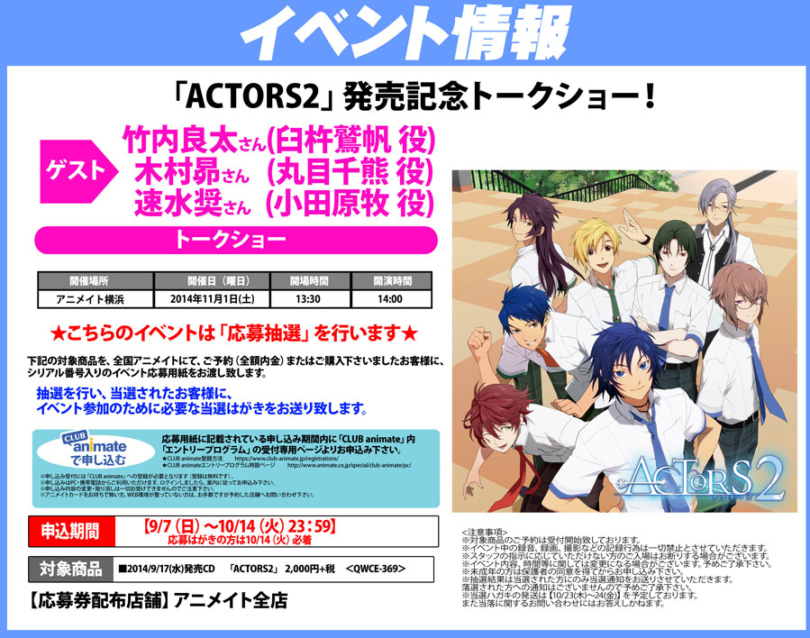 木村昴【「ACTORS2」発売記念トークショー!】出演情報