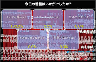 鷲崎やスタッフ全員、初めて見るニコ生アンケートの「とても良かった 100%」にテンションが上りました!笑