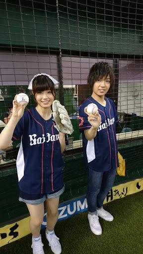 埼玉西武ライオンズのユニフォームを着用し、千葉翔也さん(月がきれい:安曇小太郎役)と一緒に