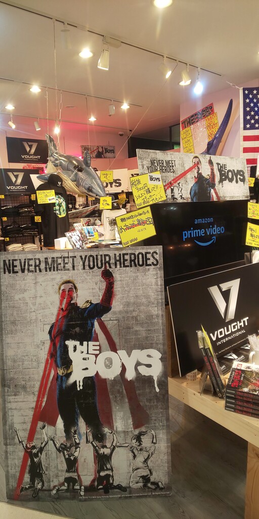 また、池袋サンシャインシティアルタではポップアップストアがオープンしまして、「ザ・ボーイズ」のグッズが勢揃いしています。