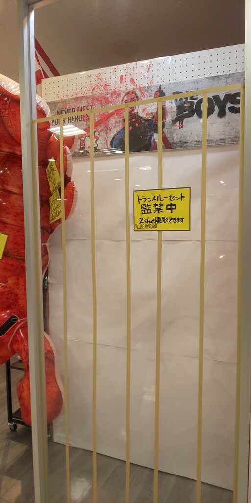 ひねりの効いたポップがいたるところに貼られ、透明人間ヒーロートランスルーセントさんと2ショット撮影できるスポットがあったりと、ザ・ボーイズ愛に溢れた楽しい店内になっています。