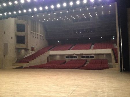 写真はそんな札幌でのライブを終え、ステージ上のセットもすべて片付けたあと、客席を映した写真です。この会館は2階席がステージのほうへ出ている形なので(写真参照)結構見やすい会場かと思います。会場によって特徴があるのも面白いですね。