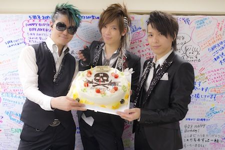 こちらのメッセージボード、どういう形でメンバーに見せたかというと、メンバー楽屋にこのボードを仕込み、ライブを終えて楽屋に戻ると、メッセージとBREAKERZスカルロゴ入りのケーキが用意してあるというものでした。写真はそのときの様子です。メッセージボードも写真に写っているのはごく一部なのですが本当にたくさんの想い、ありがとうございました。