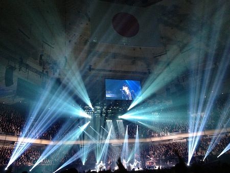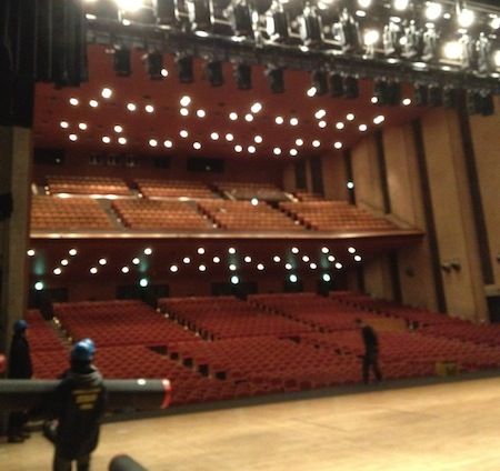メンバーが写っている写真ではないのですが、こちらは朝、これからステージを仕込むホールの状態で、メンバーが立つステージ上に敷く、パンチと呼ばれるカーペットを運んでいるスタッフさんの姿もチラッと写っています。