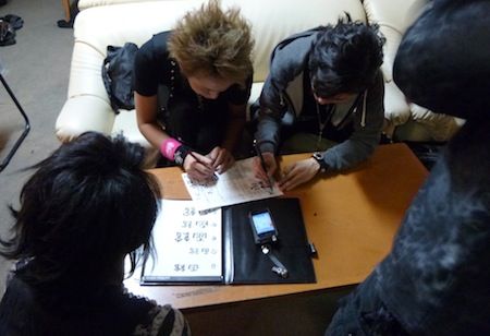 SHINPEI氏のiPhoneで漢字の書き順サイトを見て、バランスのいい、上手に見える書き方を研究している模様です。