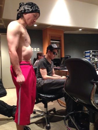 なので、HIDEHIRO氏は上半身裸でレコーディング!カメラを向けたらこんなおちゃめなところを激写しました(笑)もちろん、写真加工などはしておりません^^。