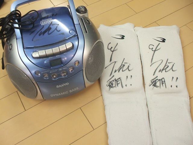 ある意味凄く有名なラジカセ君(まだ捨ててなかった!(笑)注:壊れてます!ラジオは聴けるかも)と、私が空手の練習時に装着していたレガース(スネを守るサポーター)。えっと、ゴムが伸びきっています(何故、捨てないのだろう・・・)