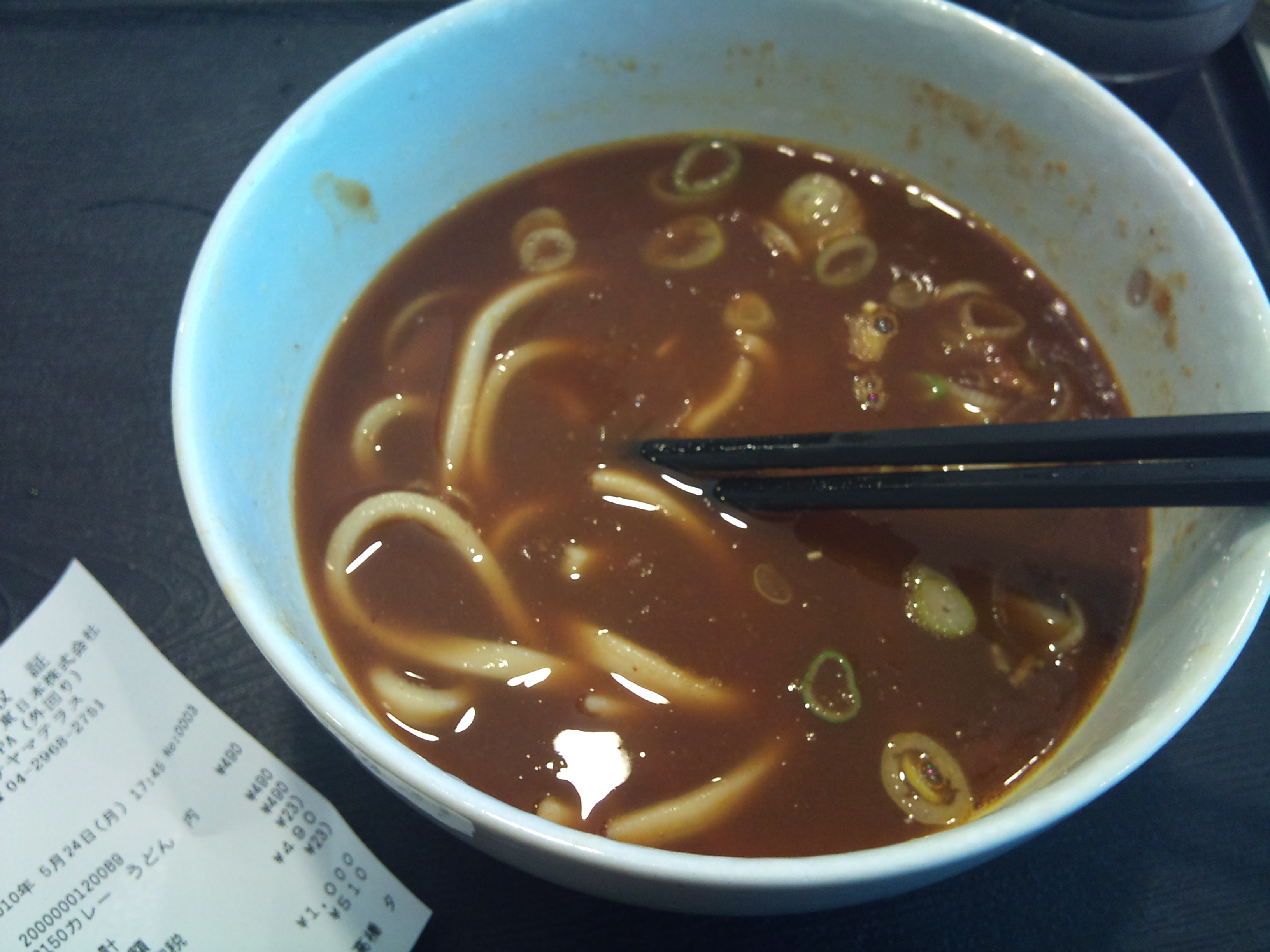 2時間くらいいて、帰りに高速のインターでカレーうどん食ったんですけど、(あ!そういや、他の人のブログで「食べてる食品」の写真が良く載ってるよな!)と思い立ち、写真を撮ってみましたが、