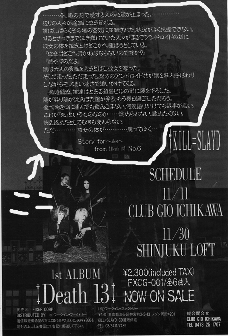 微かな記憶を辿り、問題のアルバム表題曲「Death13」の歌詞を一部を引用しながら解析してみよう...