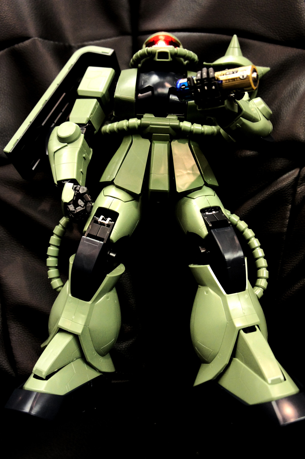 Twitterで呟きましたが、内容は「総パーツ点数548pcs、全装備重量505g、総関節数67」という名実共にガンダムプラモデルの最高峰である「PG/パーフェクトグレード」の「1/60 量産型ザク」を2時間で作る、という内容でした。
