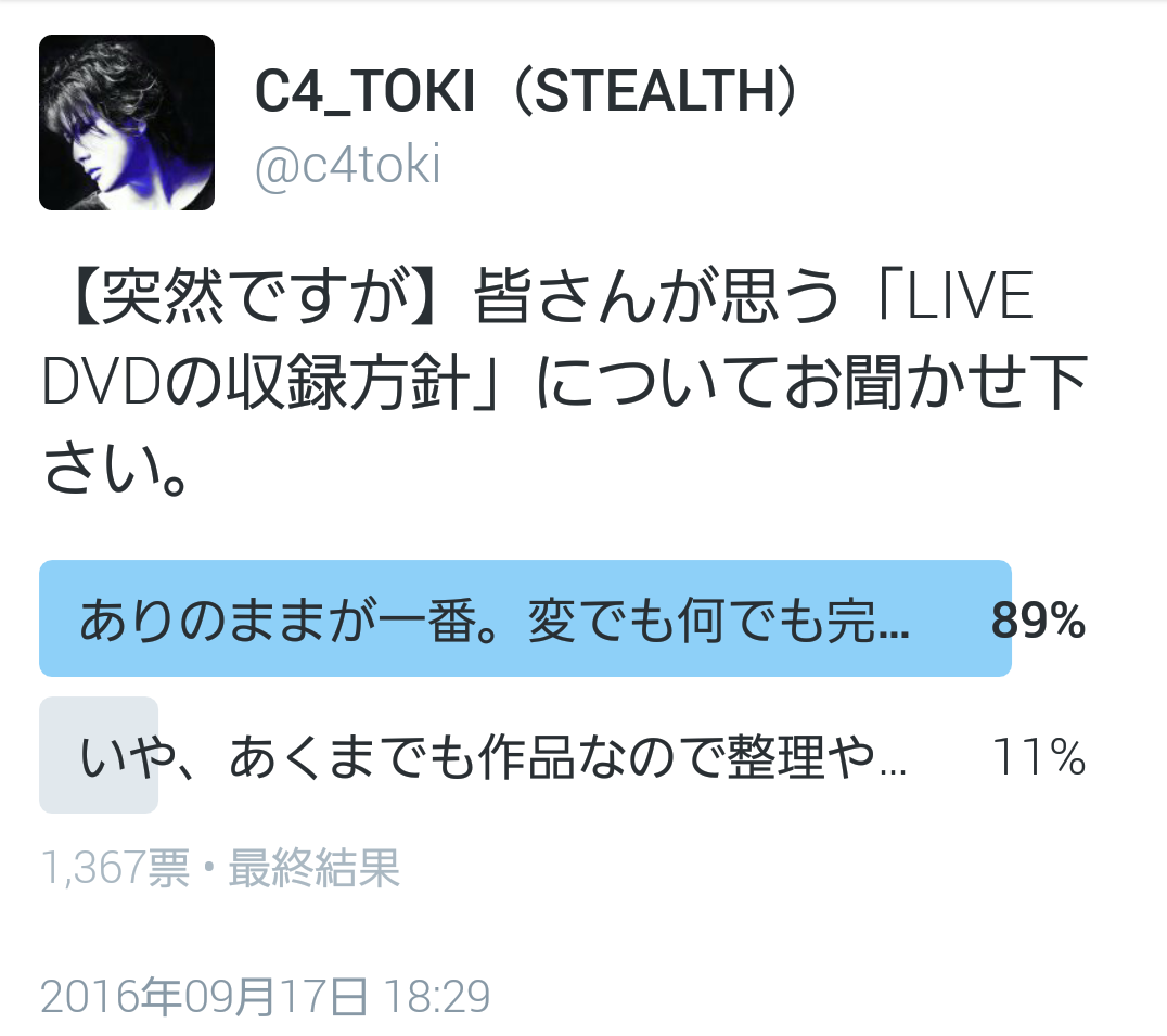5月29日のZepp Tokyoは「たまたまそうだった」為に、それが出来る状況にはなったんです。故に数日前に私のTwitterで「LIVE DVDの収録方針」について、意図も知らせず僅か1日のアンケートとはいえ、あまりにも「ノーカット収録」が圧倒的だったので、