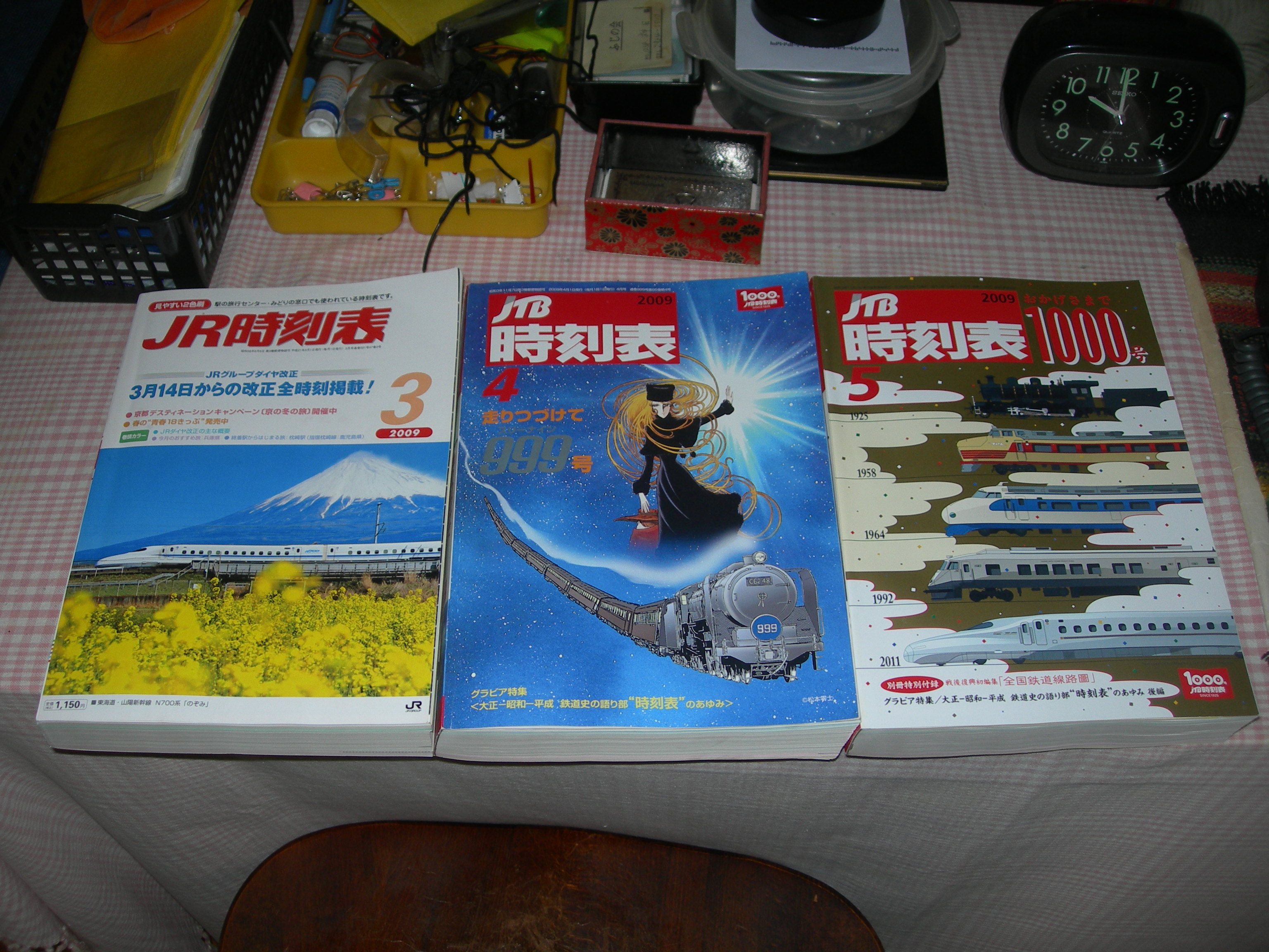 久しぶりにテツ的な書き込みですが、JTBの時刻表が5月号で1000号となったそうです。昨日発売日だったのですが、職場にある売店で買いました。毎月買うのは金額的にも重量的にも大変なので、普段は毎年3月頃のダイヤ改正の時にしか買わないのですが、4月号と5月号が記念号だったので3か月連続で買ってしまいました。テツでない人には理解出来ないかもしれませんが、僕のようなテツな人間は、時刻表は別にどこか旅行に行くわけでなくても暇な時に結構見たりしています。ちなみにこのブログは今日の書き込みで142号です。1000号になるのはいつになるのでしょうか・・・というより1000号まで続くかどうか・・・。