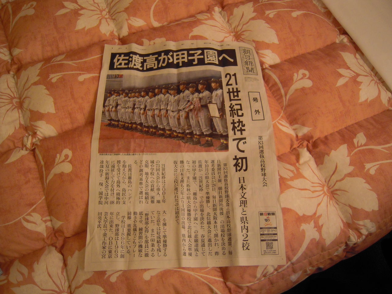 関東地方は朝は冬晴れになりましたが、今日は昼から学生の頃の友人の家探しの案内のため、昼からは3年前まで住んでいた新潟に来ております。今日は選抜高校野球の出場校の発表があって、新潟県から初めて2校が甲子園に出場するという、新潟県の高校野球にとって歴史的な日となって新潟駅前で号外が配られていました。