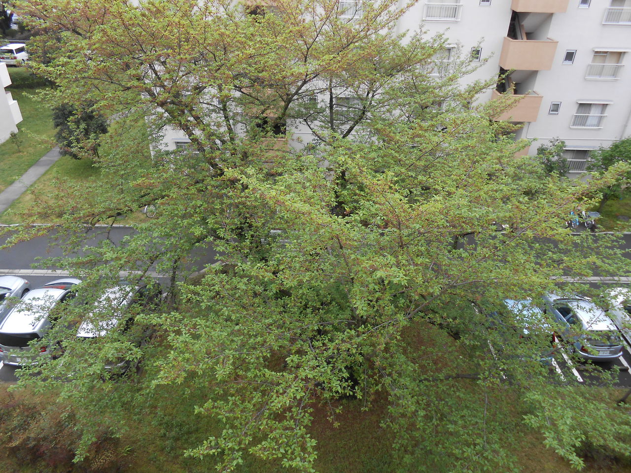 今日の東京都多摩地区は朝は曇っていましたが、今は晴れて暑くなっています。ついこの間までは肌寒かったのに一気に暑くなって、寒いよりは暑い方が好きですが体がついていけません。自宅ベランダ前の桜の木は花はとっくに散ってしまいましたが、若葉が生えてきています。