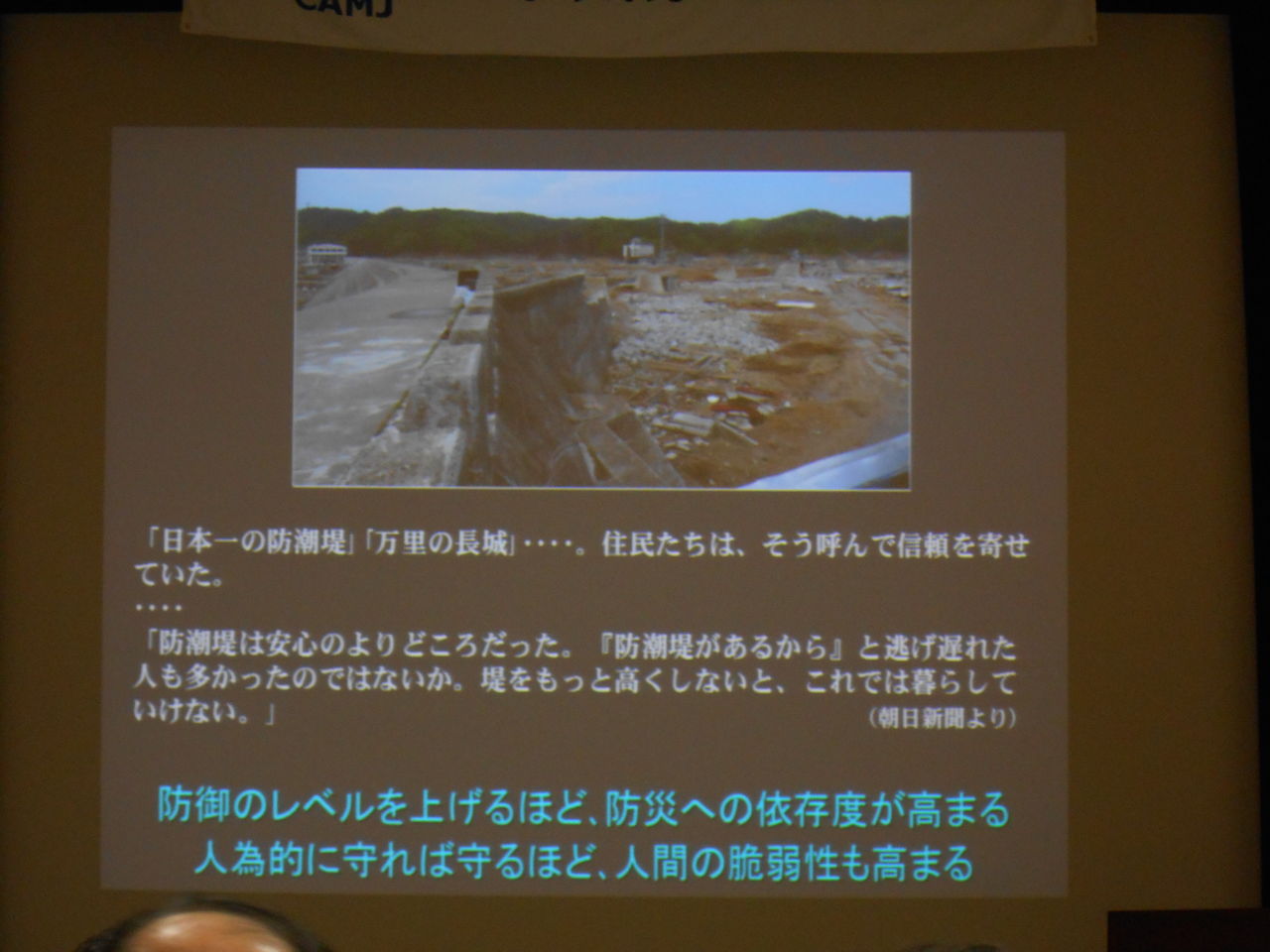 東日本大震災の津波はこれまで経験したことが無い津波で、防潮堤や防波堤があることで安心してしまった人も多かったのかもしれません。東日本大震災は想定外の災害と言われていますが、想定外という言葉はおかしいと言っていました。