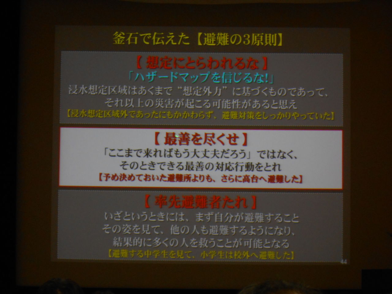 ハザードマップは過去の災害に照らし合わせて作成されたもので、ハザードマップは完璧なものではありません。この教授は釜石でこんなことを訴えてきたそうです。