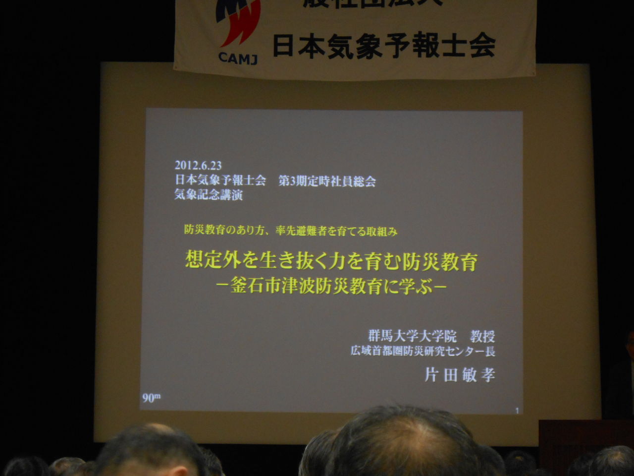 先日の土曜日は日本気象予報士会の社員総会というものがあり、そちらの方に参加してきました。午前中は昨年の東日本大震災の被災地で子供たちを対象に防災教育をしてきた、群馬大学大学院の教授の講演がありました。