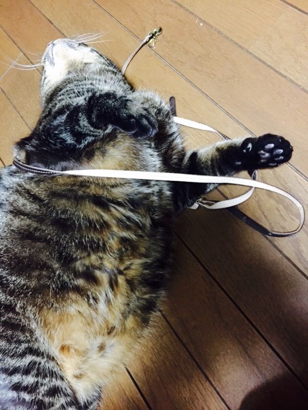 帰宅早々、私のiPhoneのひもで遊びだすらんちゃん。。笑