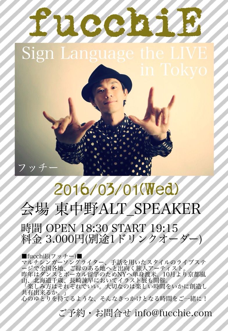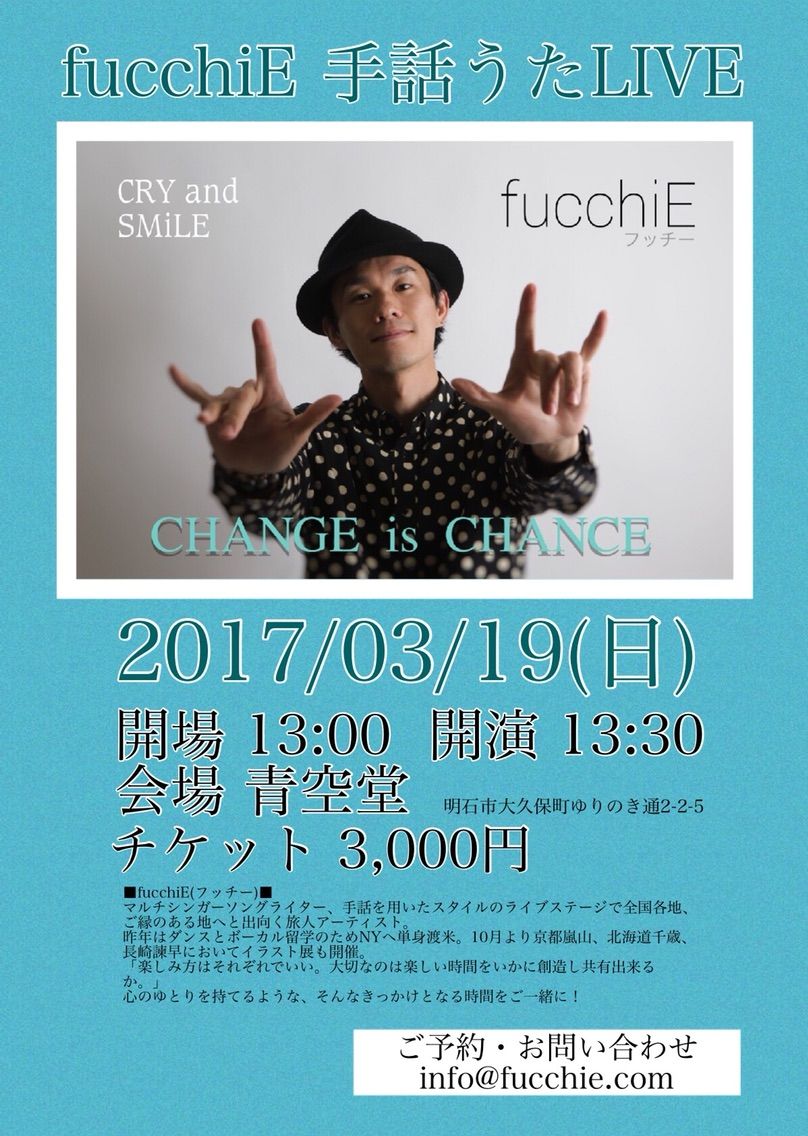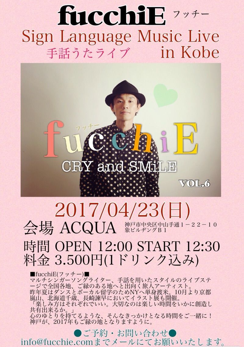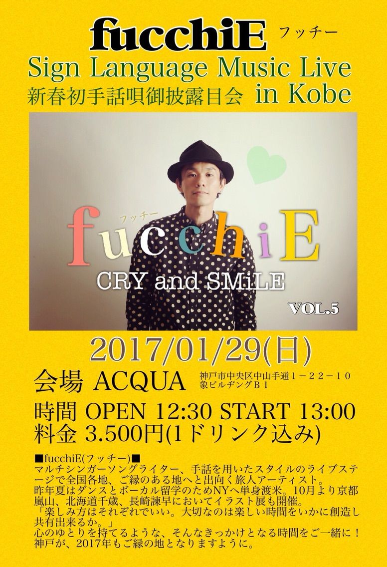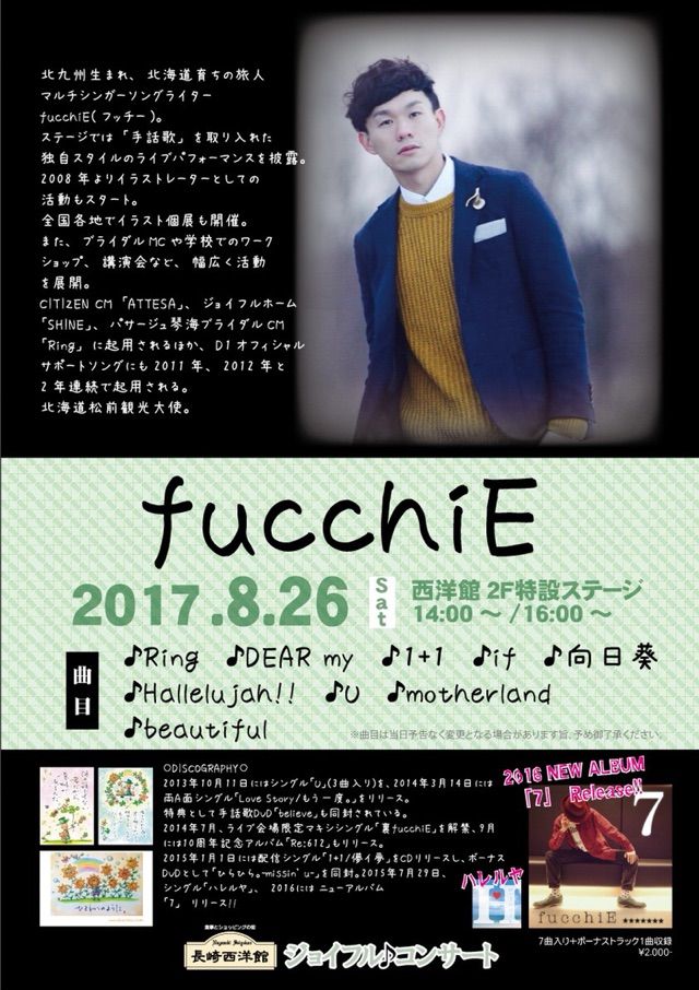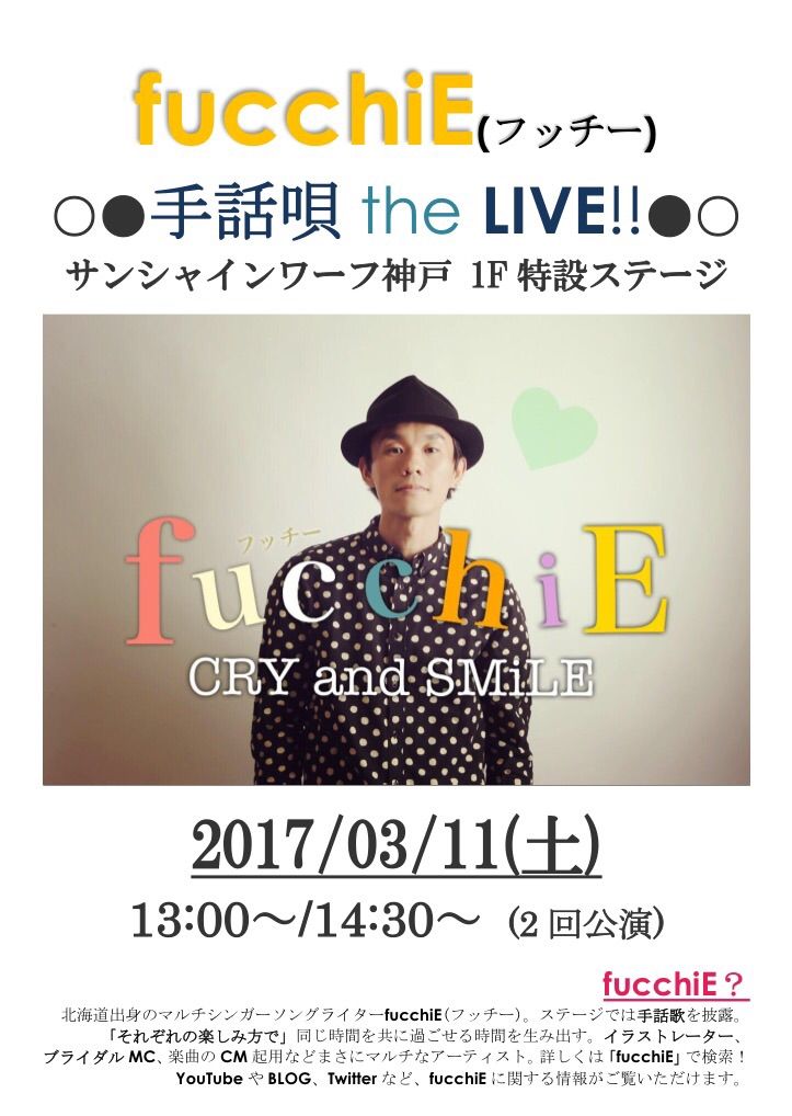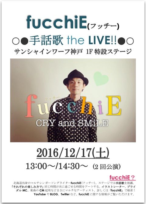 フッチーさんの誠実さと明るさに満ち溢れた歌ばかりでしたね。たっぷりと楽しませてもらいました。2曲目はオール手話付き、他の曲もサビの部分に手話をつけてくれて、フッチーさんの優しさが伝わりました。