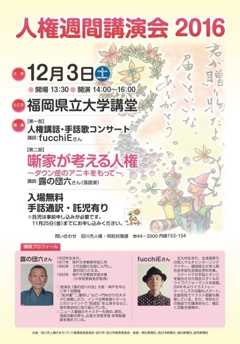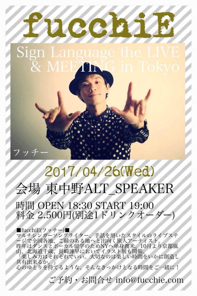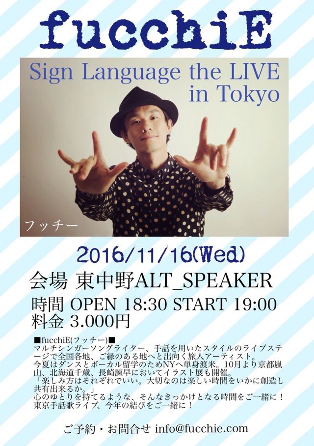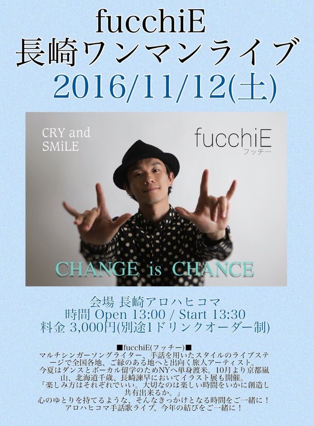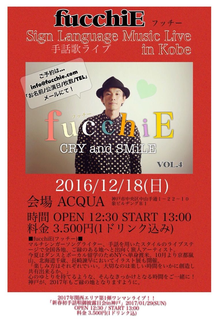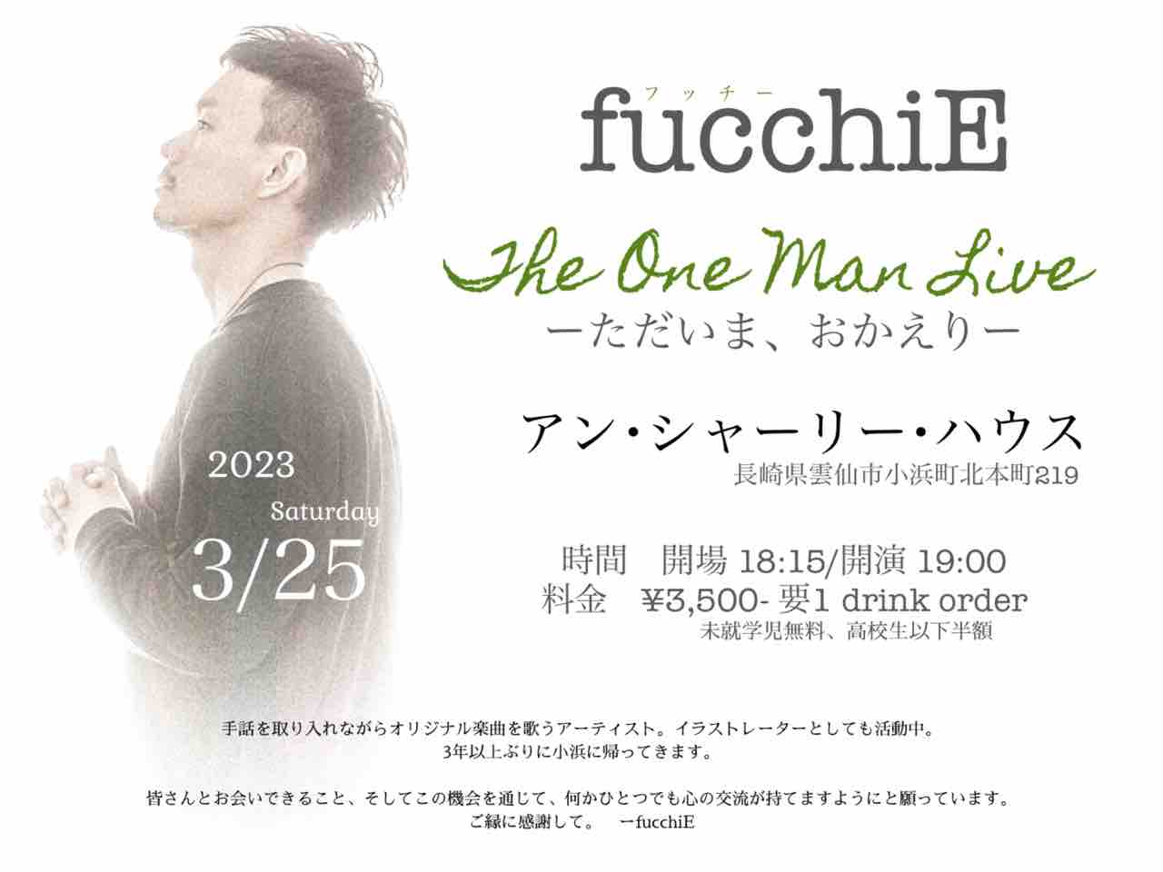 フッチーさんの誠実さと明るさに満ち溢れた歌ばかりでしたね。たっぷりと楽しませてもらいました。2曲目はオール手話付き、他の曲もサビの部分に手話をつけてくれて、フッチーさんの優しさが伝わりました。