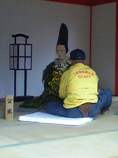 あっ、写真、これ昨日の菊人形の会場でリ「アルに動いている人形がある」と思って近づいてみたら、何か作業しているオッサンでした。黄色のジャンパーなんか着ていたので遠くから見たらたら、てっきり菊の花にみえてしまいました。
