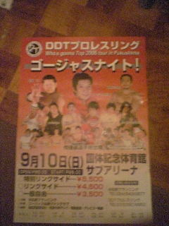 以前このblogでもお知らせ致しましたが、DDTプロレスの福島大会「ゴージャスナイト」に関しまして。