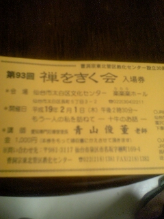 40cfd815.jpg今日は入院している病院の院長先生、そして私が座禅に通っているお寺のお坊様と一緒に、仙台市まで愛知専門尼僧堂堂長の青山俊董老師という尼僧様の講演会を聴講してきました。