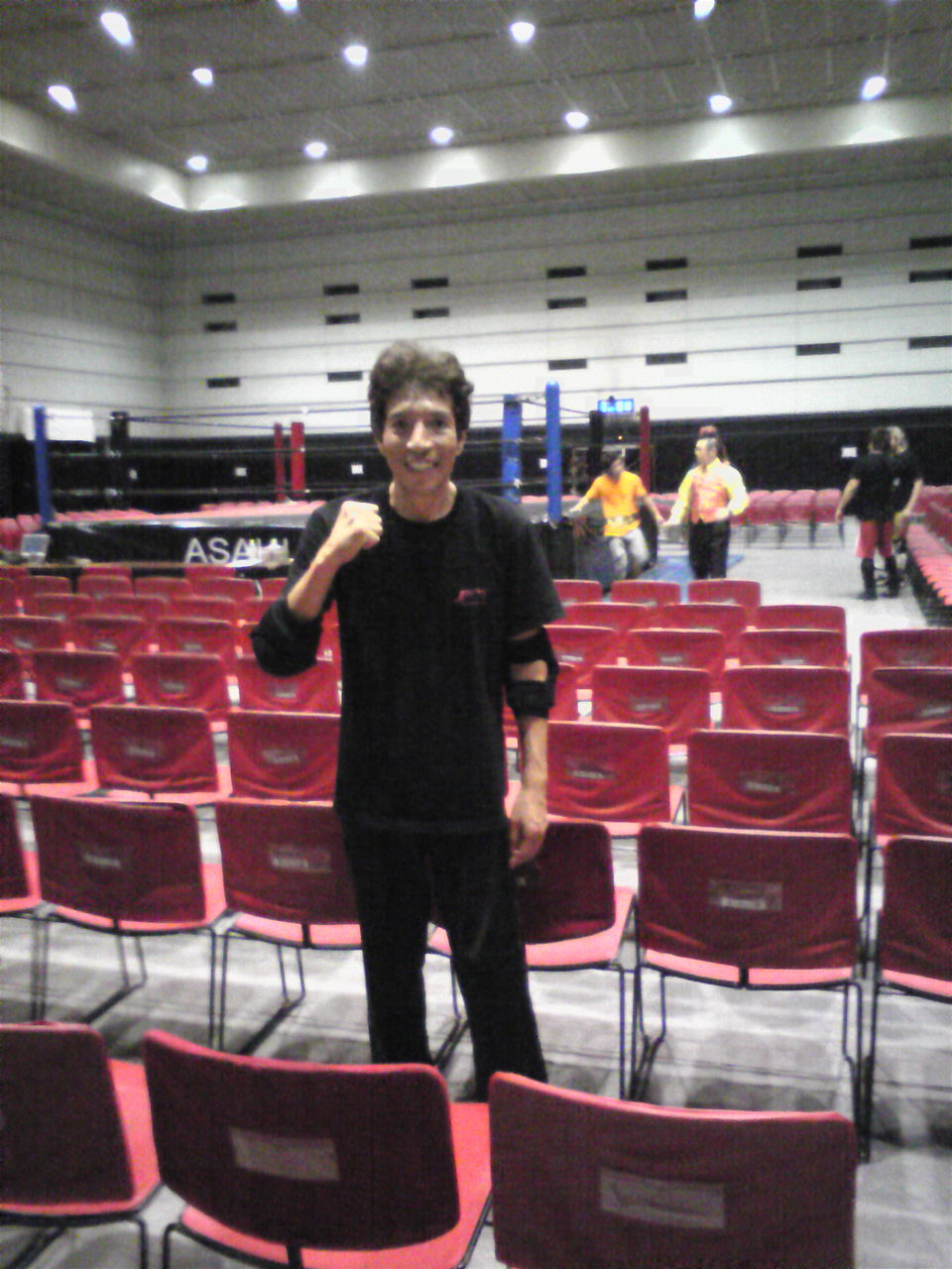 ところで、今日の試合は、菊タロー選手、Djニラ選手とのスリーウェイ、御本家菊タロー選手から、お客様に楽しんで頂くプロレスをタップリ伝授して貰いました
