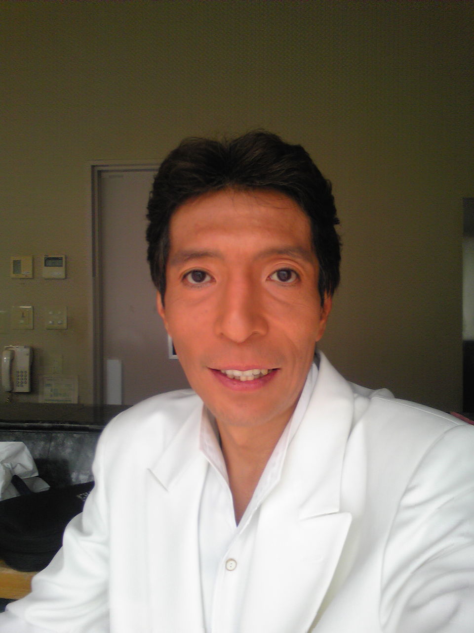 お決まりのヘヤースタイルは、両脇が耳ギリギリかかる位、あとは手櫛ですらっと流せる程度。