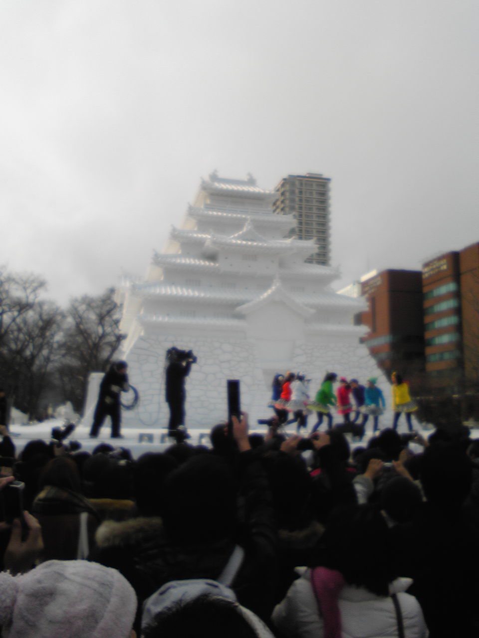 数有る雪像の中には、ご覧の様に、我が郷土福島を代表する、会津鶴ケ城の雪像も設置されており、ついつい郷愁をそそられてしまいました。