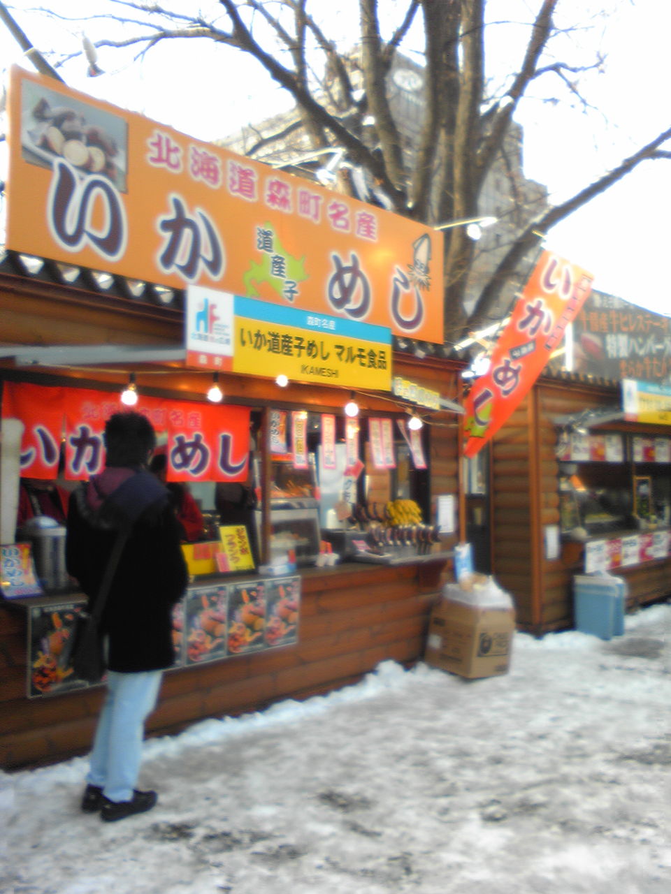 ご覧の様に雪まつりの会場には、食欲をそそる飲食ブースがずらり。