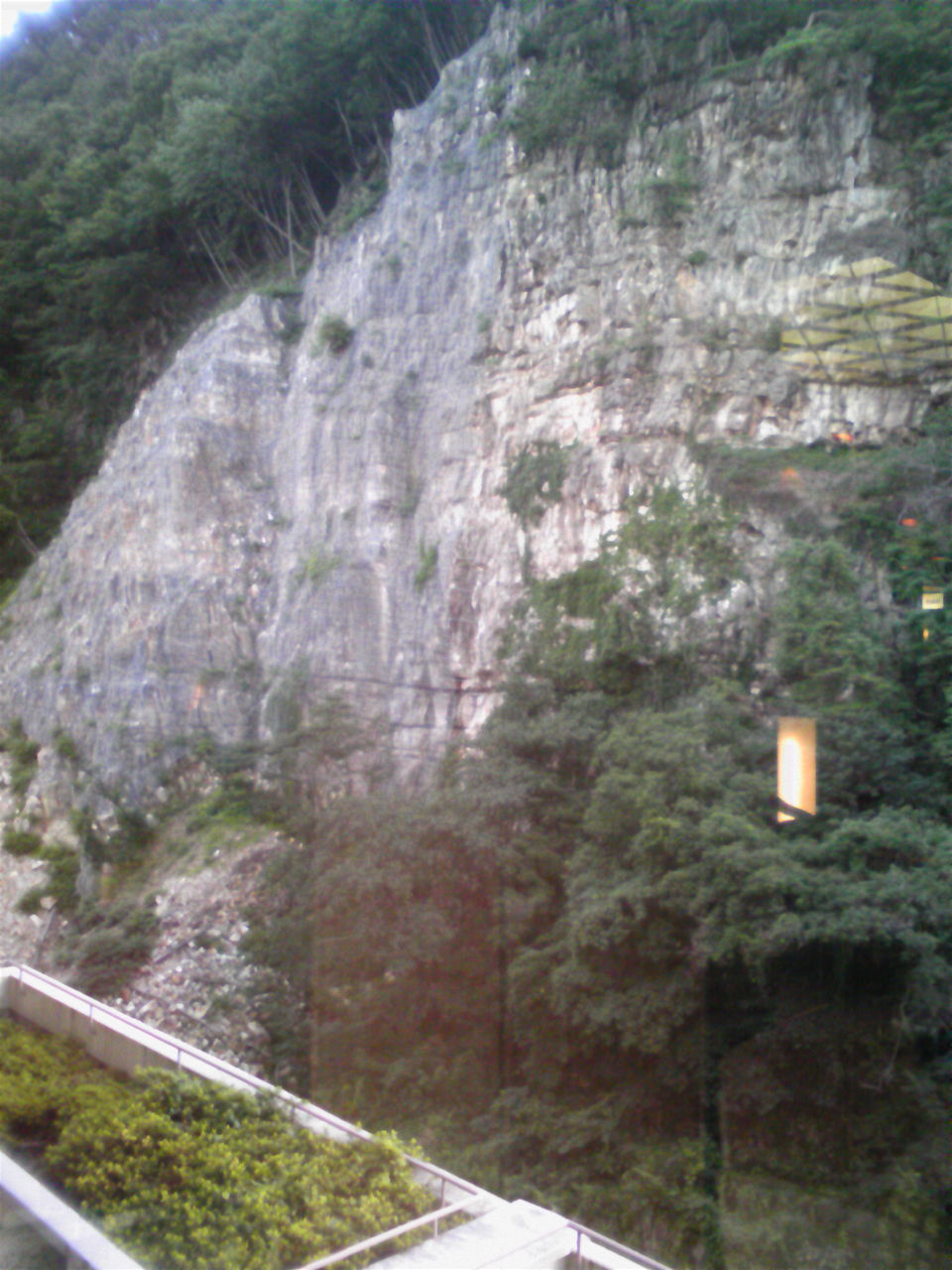 時折この岩肌では、かもしかや日本猿が遊ぶ姿が見られるということです。