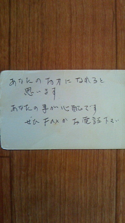 「あなたのことが心配です。きっとお力になれると思います。電話かファックスお待ちしています。」