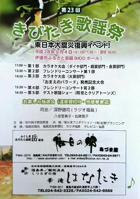 皆様も、私ゴージャス松野と田代純子がお贈りする歌の祭典『きびたき歌謡祭』へ、明日は是非足をお運び下さいf(^_^;