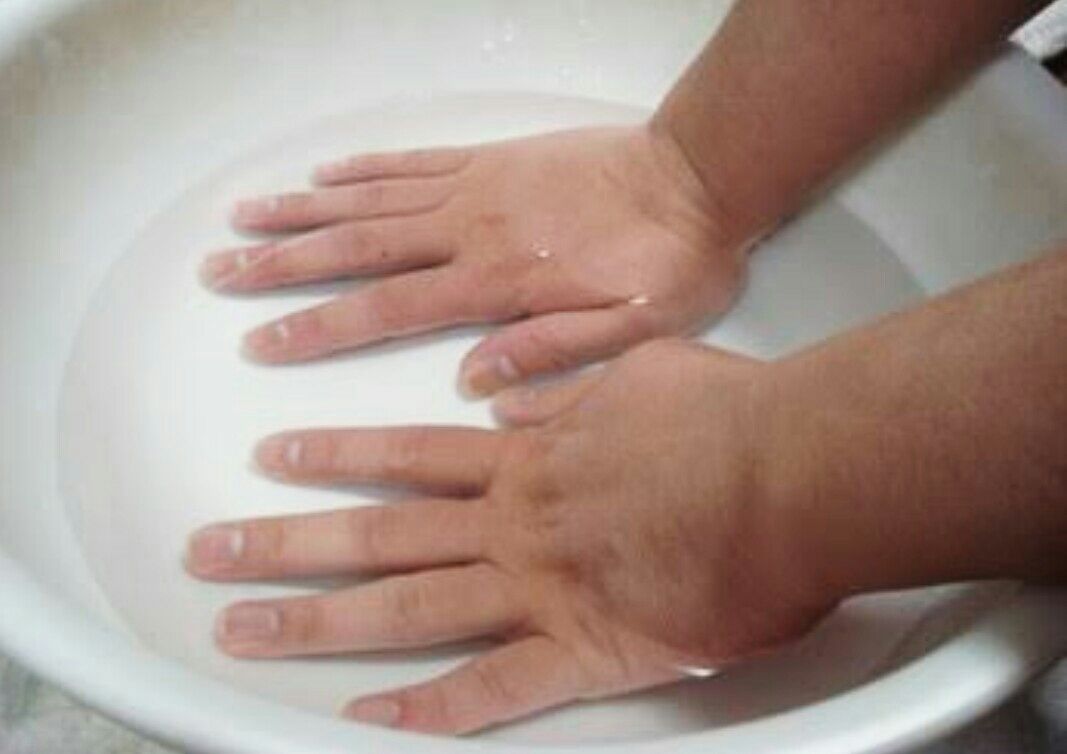 ・洗面器に43度くらいのお湯をはり、手首から先を10〜15分ほど湯につける。
