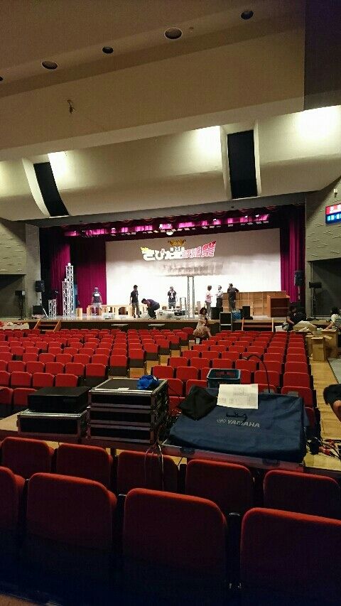 設営の最後は、明日の歌謡祭の目玉でもある生バンドの楽器のセッティングが行われました。