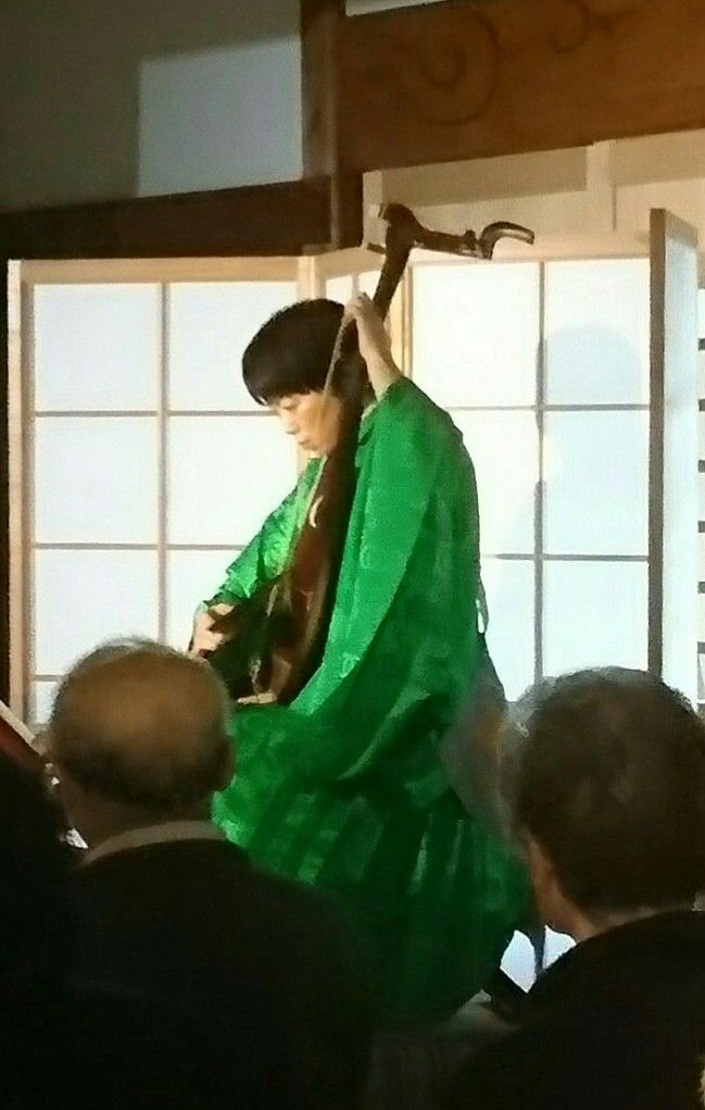今日、琵琶を演奏されたのは、八幡寺の副住職の八幡明心さんとその師匠の中田朝水さんでした。