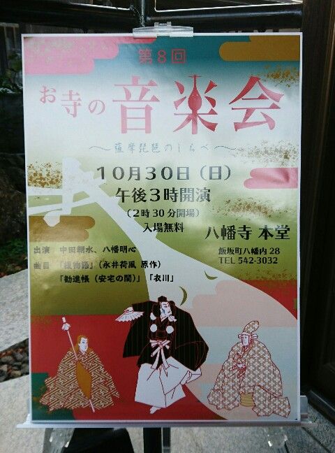 普段はあまり生で聞く機会がない琵琶の演奏を、荘厳なお寺の本堂で聞くというとても味わい深い音楽会でした。