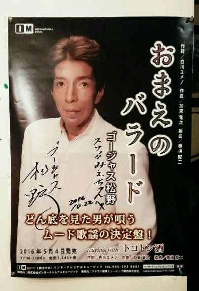 私にとっては、昨年5月に新曲『おまえのバラード』を発売してから、初めての新年会シーズン・・・忘年会シーズンの時もそうでしたが、宴会ではタイトル曲のムード歌謡『おまえのバラード』よりも、演歌調のカップリング曲『トコトン酒』の方が大人気でした(笑)。