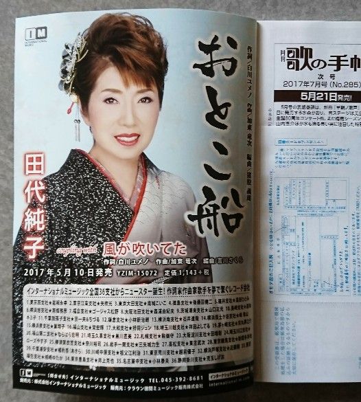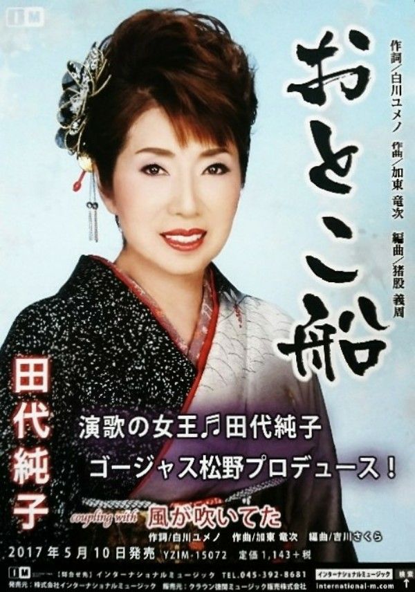 発売まで、残すところあと10日・・・田代純子の新曲『おとこ船』は、全国各地のCDショップ、各インターネットサイトで好評予約受付中です。