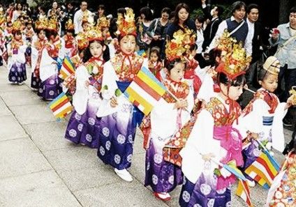 別名花まつりや降誕会とも呼ばれ、様々な草花で釈迦が生まれたルンピニ園の花園を表わす花御堂(はなみどう)を作り、中に灌仏桶を置いて甘茶で満たし、中央に安置した誕生仏に甘茶をかけてお祝いをする風習があります。