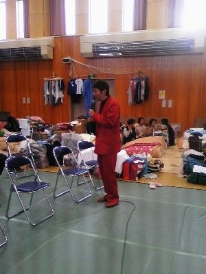 避難所には、津波で家を失った方や、放射能の避難区域から避難して来た方々が大勢身を寄せ合って生活をしていました。