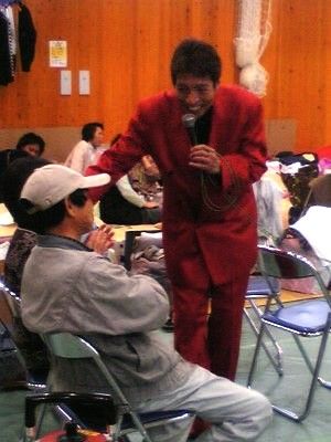 そして、演奏会のラストには、私が先週のDDTプロレスの興業の時にお客様と共に合唱した「365歩のマーチ」を、今度は避難所の皆さんと一緒に合唱して元気を分かち合いました。
