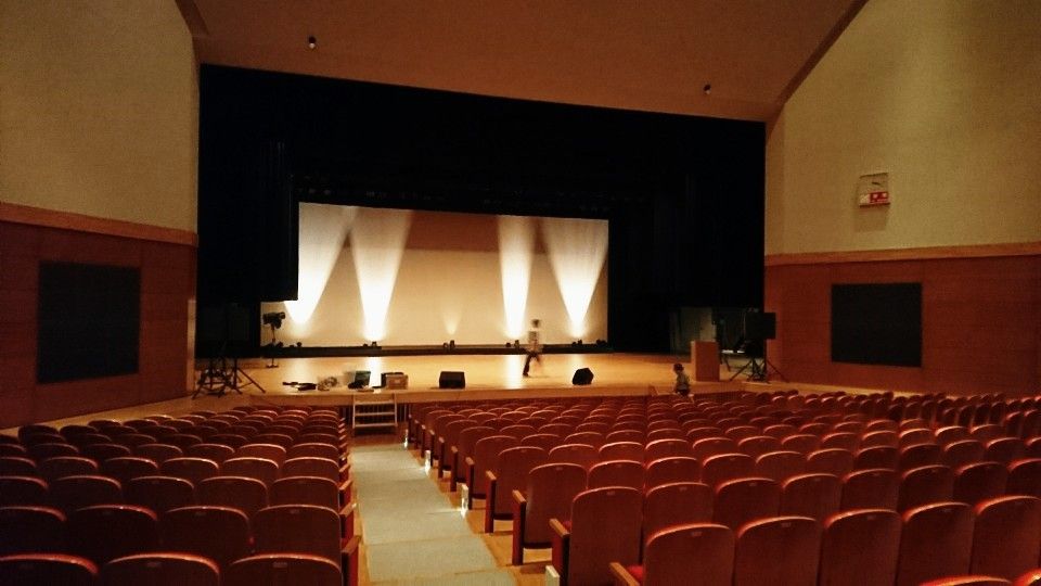 会場となる『高畠文化ホールまほら』のステージには、音響機材の他に照明機材やトロフィーの設置も行われ、あとはいよいよ明日の本番を待つのみとなりました。