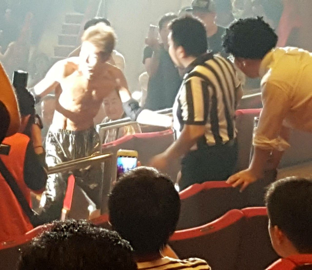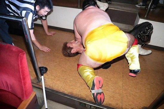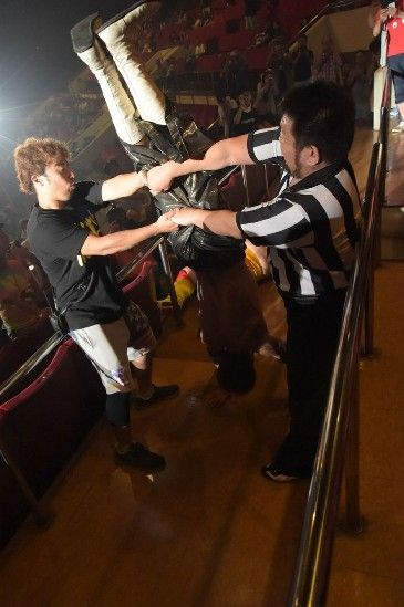 ゴージャスバラモンが2年振りに復活となった今日の試合・・・ゴージャスバラモン入場と同時に、会場内はいつも通り撒き散らかされた水で大混乱となりました。