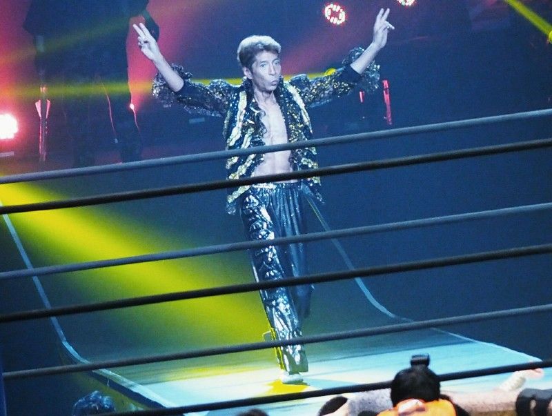 そこで、会場内には『ボンジョーレ、マツーノ』の入場テーマが鳴り響き颯爽とマツノコレクションA.T.が登場・・・大きなどよめきの中で、高木三四郎&大鷲透&平田一喜VS大石真翔&石井慧介&マツノコレクションA.T.の6人タッグマッチ試合開始のゴングが打ち鳴らされました。