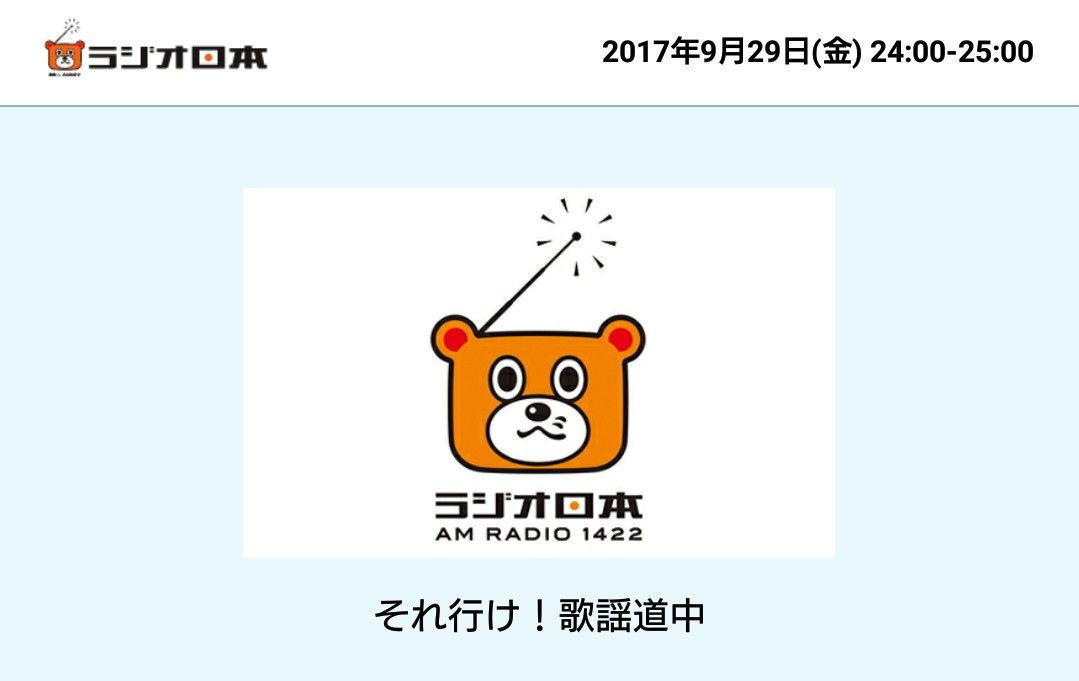 それ行け!歌謡道中│ラジオ日本│2017/09/29/金 24:00-25:00 http://radiko.jp/share/?sid=JORF&t=20170930000000