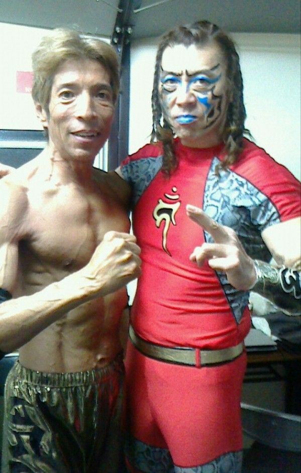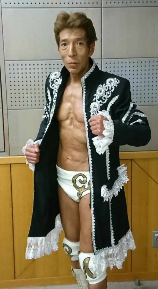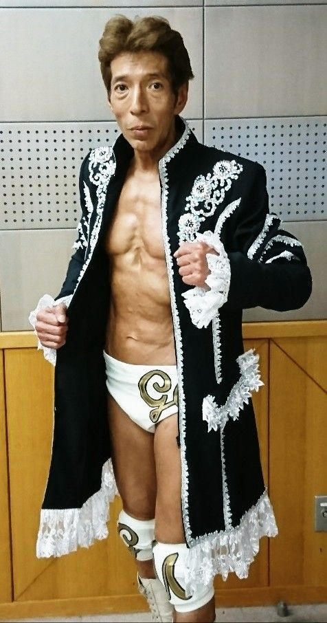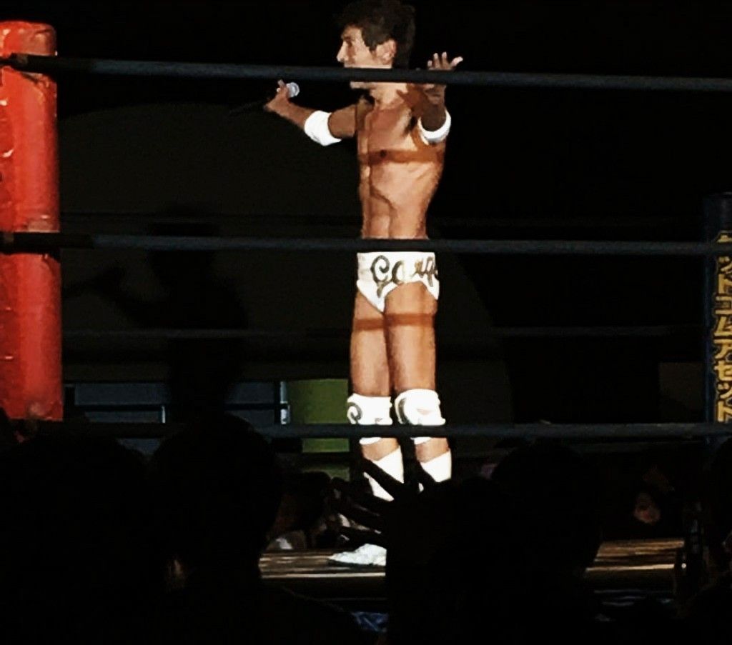 メインイベントは竹下幸之介&彰人&ゴージャス松野vs坂口征夫&高梨将弘&岩崎孝樹の6人タッグマッチ・・・わらじまつりの皆さんによる巨大な金わらじのお披露目後に私が新コスチューム&ガウンで登場。