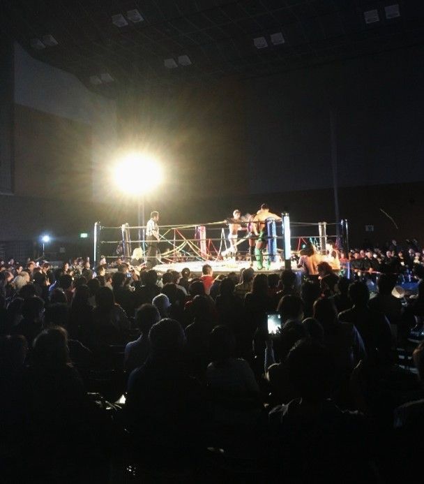 腕の取り合いのレスリングに始まって、お互いの得意技の切り返し合い・・・終盤には、619ブーメランからスターエルボー、そして高梨選手の十八番タカタニックをこの私が仕掛けホールを狙うという一幕も有りました。